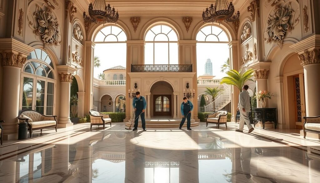 نحن في شركة المعجزة ندرك أهمية الحفاظ على نظافة الفلل الفاخرة في دبي. مع مناخ دبي الصعب، قد تكون عملية التنظيف تحديًا كبيرًا.